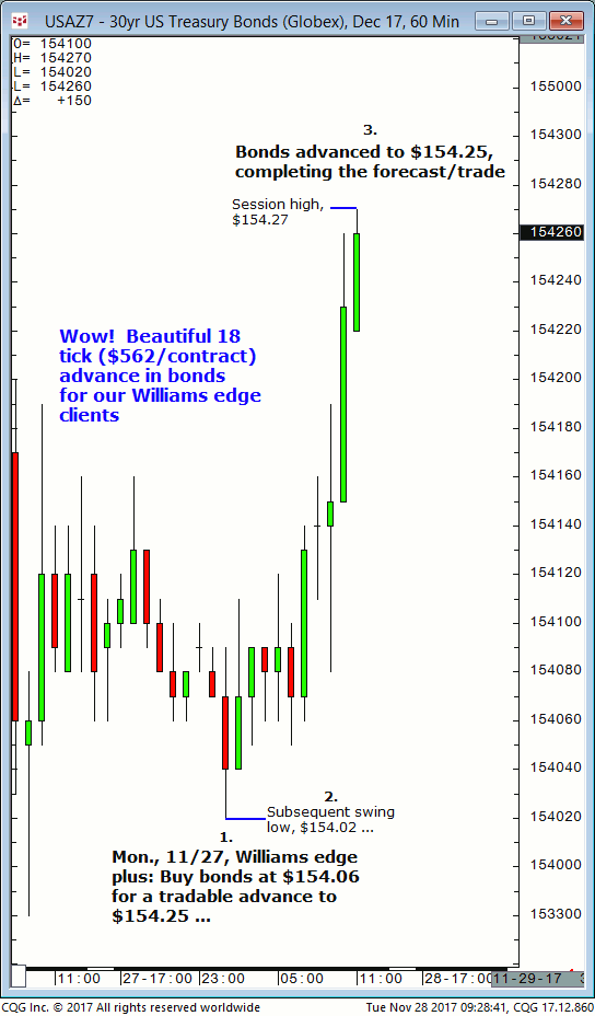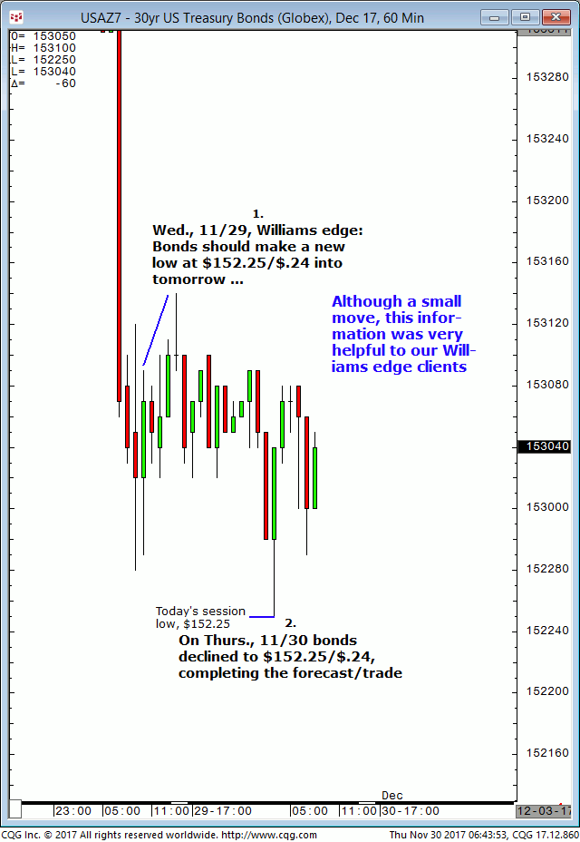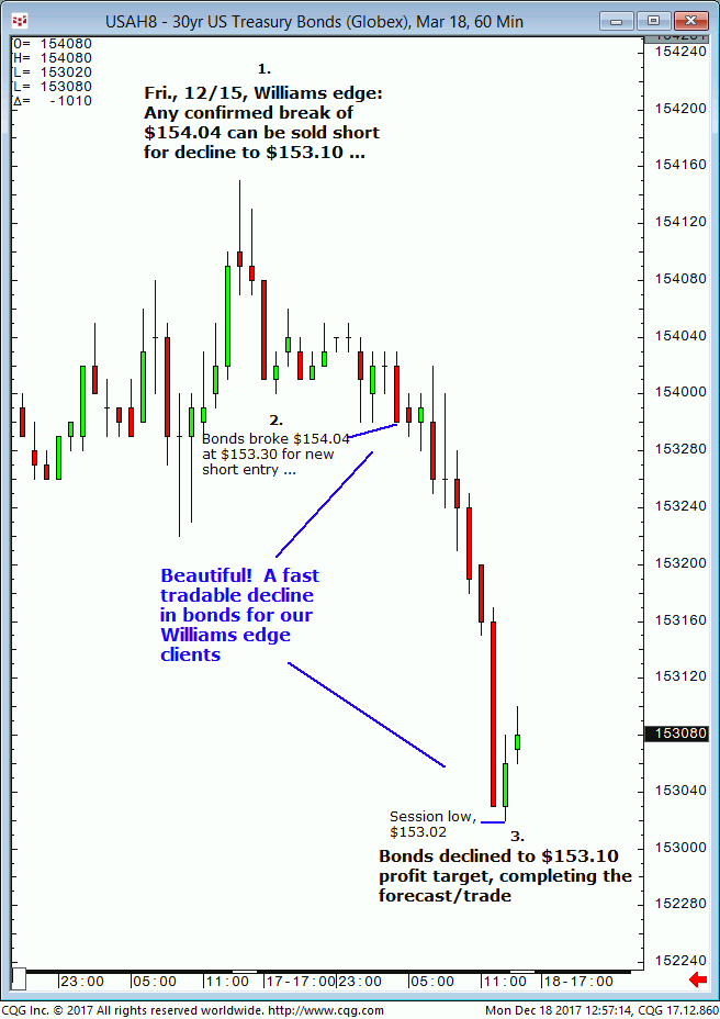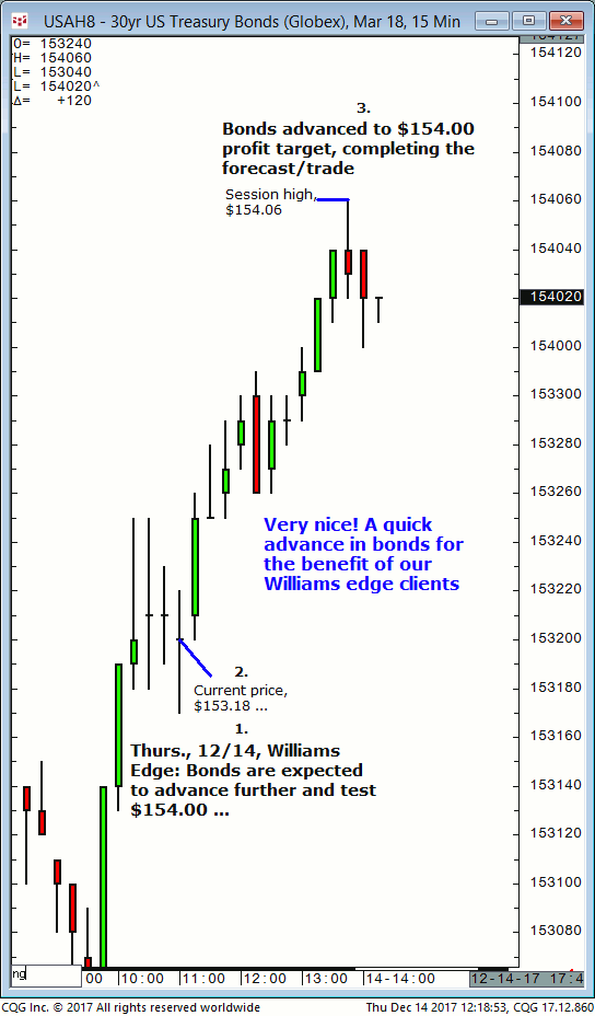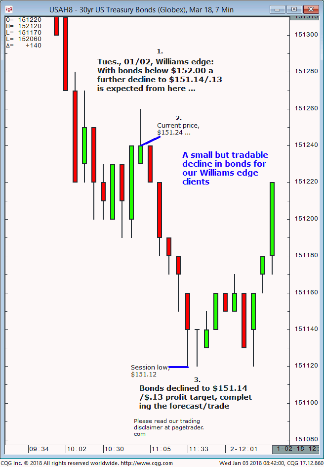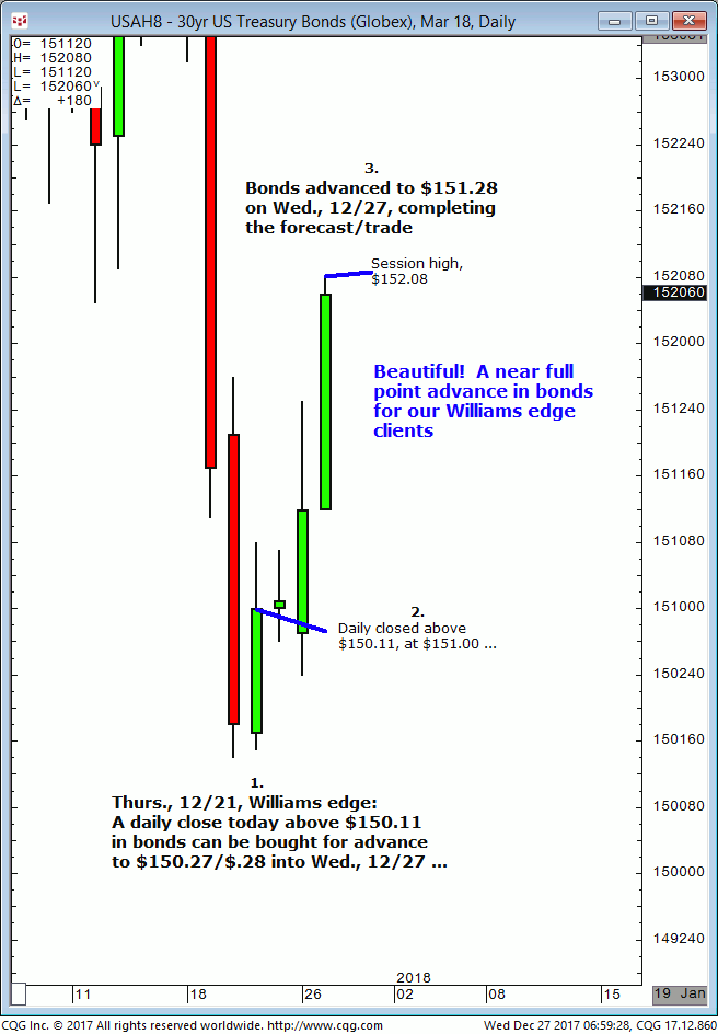 March 30 year U.S. Treasury bond: 1. In last Wednesdays (01/17) Williams edge live meeting it was noted that a daily close below $150.12 in the March 30 year U.S. Treasury bond would produce a sharp decline to new recent lows. This would indicate a decline below $149.03. 2. Subsequently, Wednesday 01/17 closed below $150.12 […]