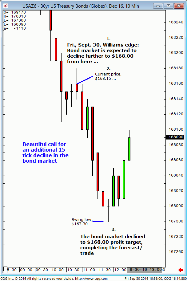 December 30 year U.S. Treasury bond: 1. Since Monday, October 17 we have noted in our Williams edge live meeting that the December 30 year U.S. Treasury bond was expected to advance from approximately $163.20 up to $165.10/$.15. 2. Subsequently, the December 30 year US treasury Bond advanced and today (Monday, October 24) completed the […]