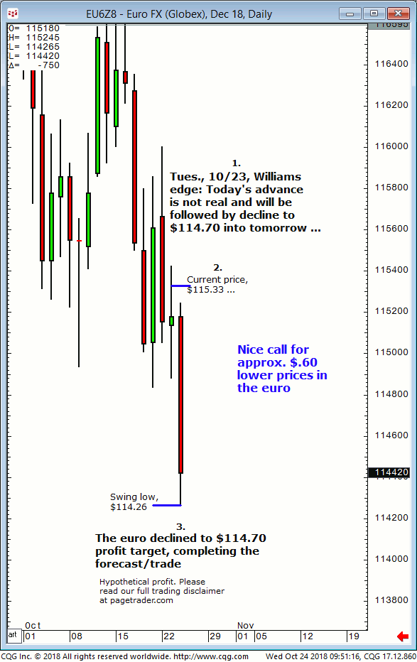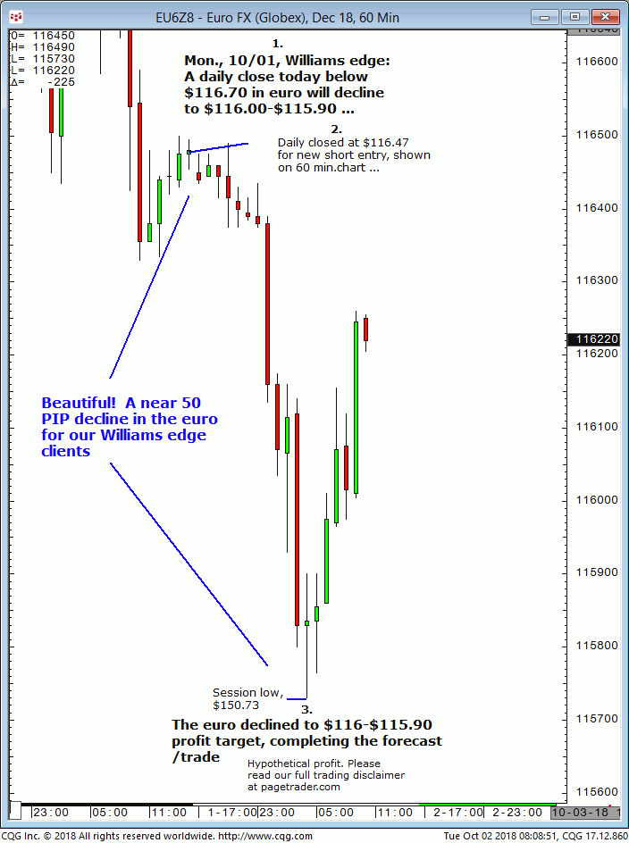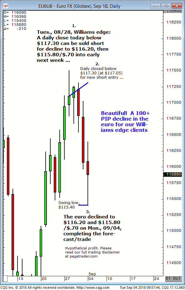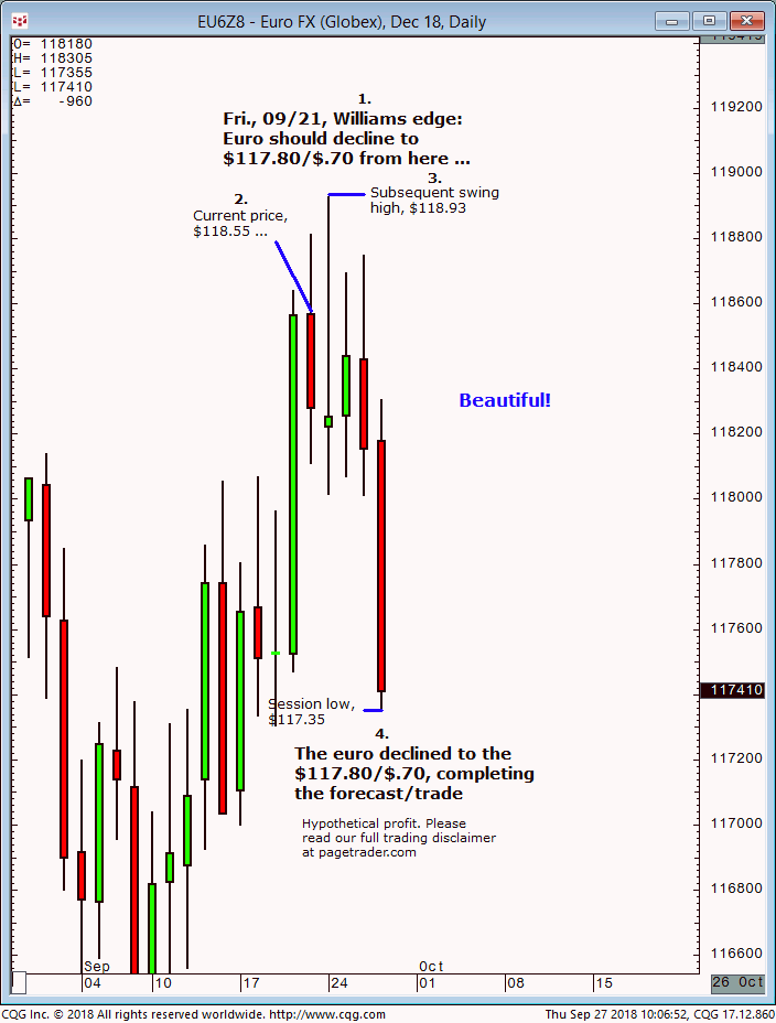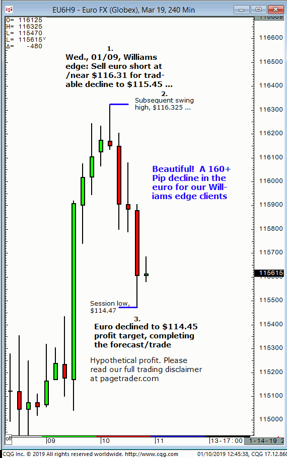 March euro: 1. In last Wednesdays (01/09) Williams edge session it was noted to sell the March euro short at/near $116.31 for a tradable decline to $115.45. 2. Subsequently, the March euro made a swing high of $116.32 before reversing sharply lower and completing the $115.45 downside target (swing low, $114.47). This successfully completes the […]