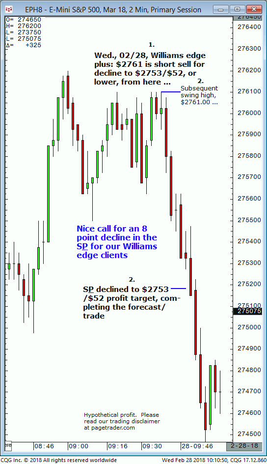 March S&P: 1. In last Wednesdays (02/28) Williams edge plus session it was noted that $2761 could be sold short for a decline to $2753/$52, or lower. 2. Subsequently the March S&P made a swing high of $2761 before reversing powerfully to the downside and completing the $2753/$52 downside profit target (and lower). This successfully […]