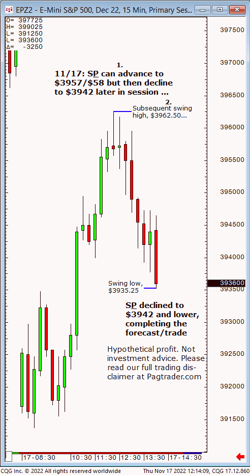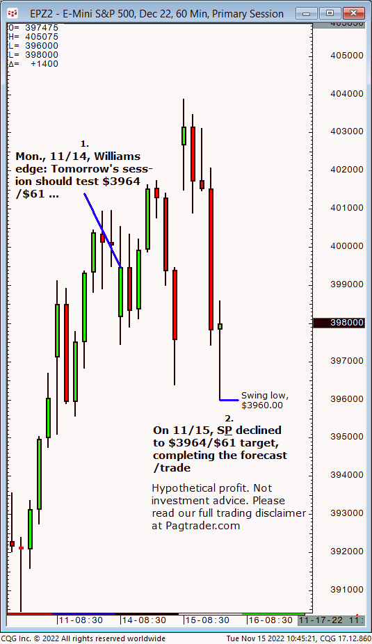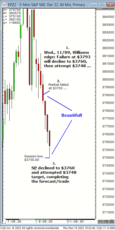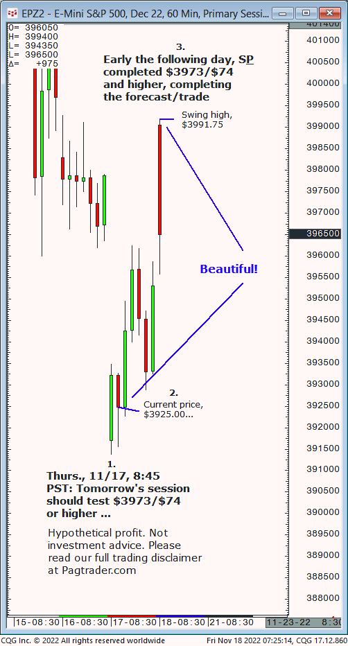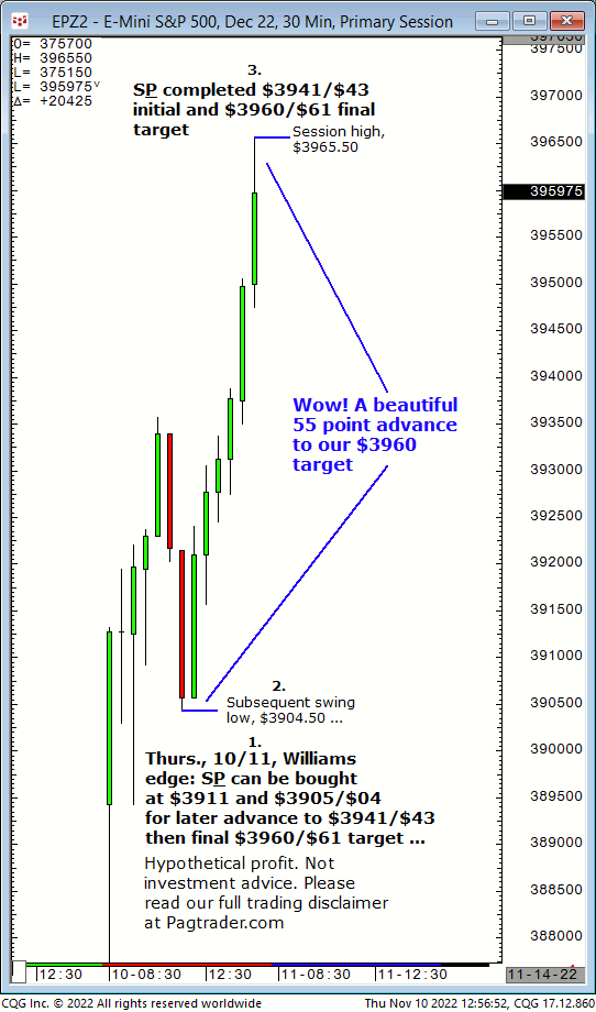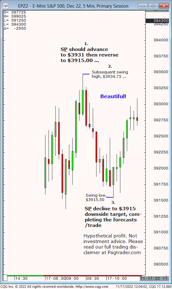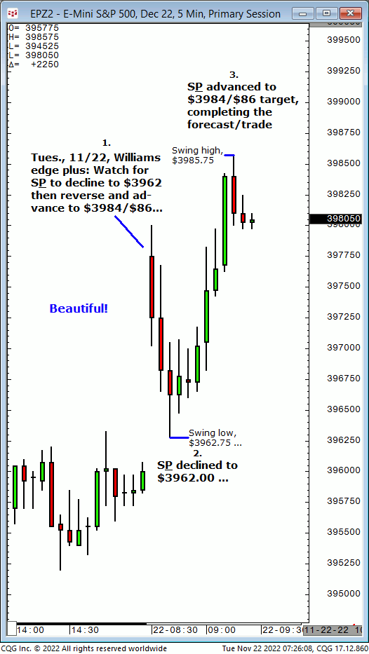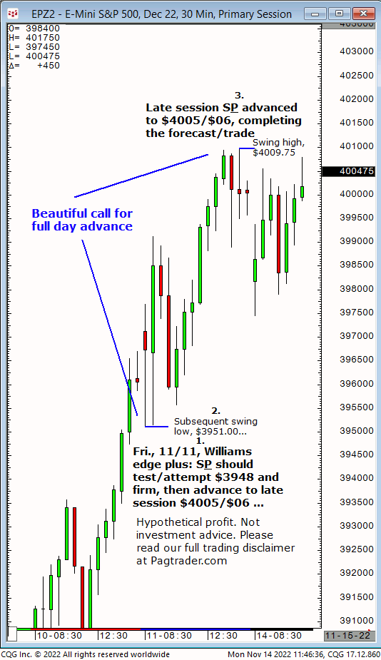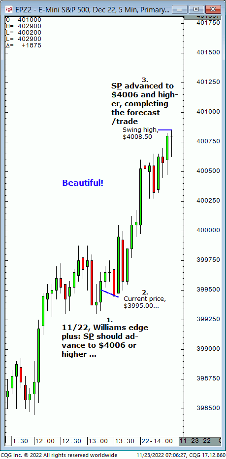 Wed.,11/23, Ameritrade live TV forecast: Buy any decline to $4003/$014 and advance back to $4018 or higher to complete in the 2nd half of today. Results? The S&P declined to $4003.25 then advanced and completed the $4018 target just after midday!