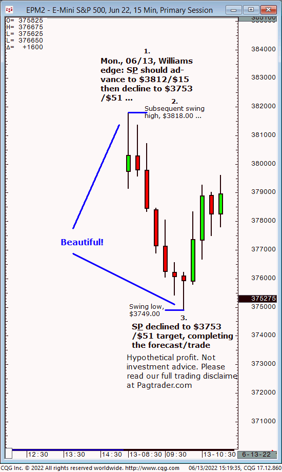 Mon., 06/13: S&P should advance to $3812/$15, then decline to $3753/$51. Result? The S&P made a subsequent swing high of $3818, then declined to $3753/$51!