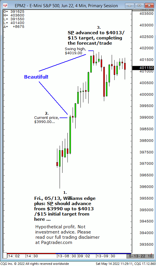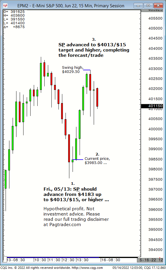 Fri., 05/13: S&P should advance from $3990 up to $4013/$15 initial target from here. Result? The S&P advanced from $3990 to $4013/$15!
