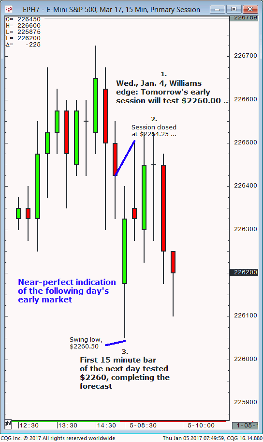 March S&P: 1. In today’s (Friday, January 6) Williams edge futures meeting it was noted that the March S&P (then trading at approximately $2271.50) was expected to continue to advance and could be bought for a test of $2275/$77. 2. Subsequently, the March S&P advanced and completed the $2275/$77 upside target (today’s session high, $2277.00, […]