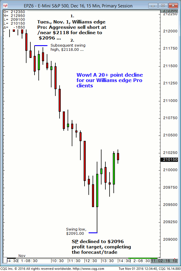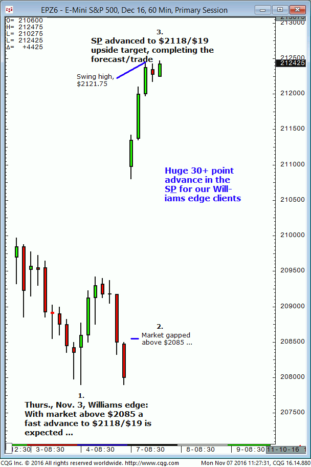 December S&P: 1. In today’s (Tuesday, November 8) 11:22 live messenger post (and live meeting) it was noted that the December S&P was expected to continue to advance and test $2143/$44. 2. Subsequently, the December S&P declined slightly and reversed higher and completed the $2143/$44 upside target (today’s session high, $2143.25, so far). This successfully […]