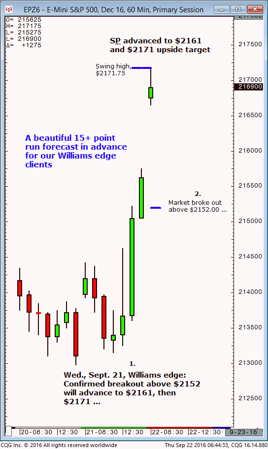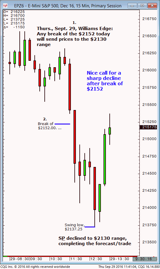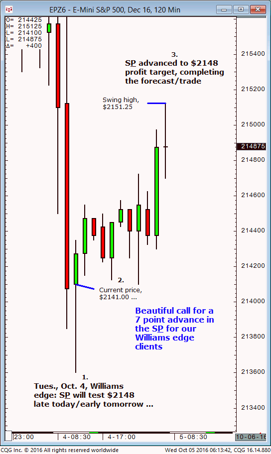 December S&P: 1. In yesterday’s (Tuesday, October 4) Williams edge Pro room it was noted that an hourly close above $2139 would indicate a test of $2148 into late yesterday/early today (Wednesday, October 5). 2. Subsequently, the December S&P advanced and today (Wednesday, October 5) completed the $2148 upside target (swing high, $2151.25, so far). […]