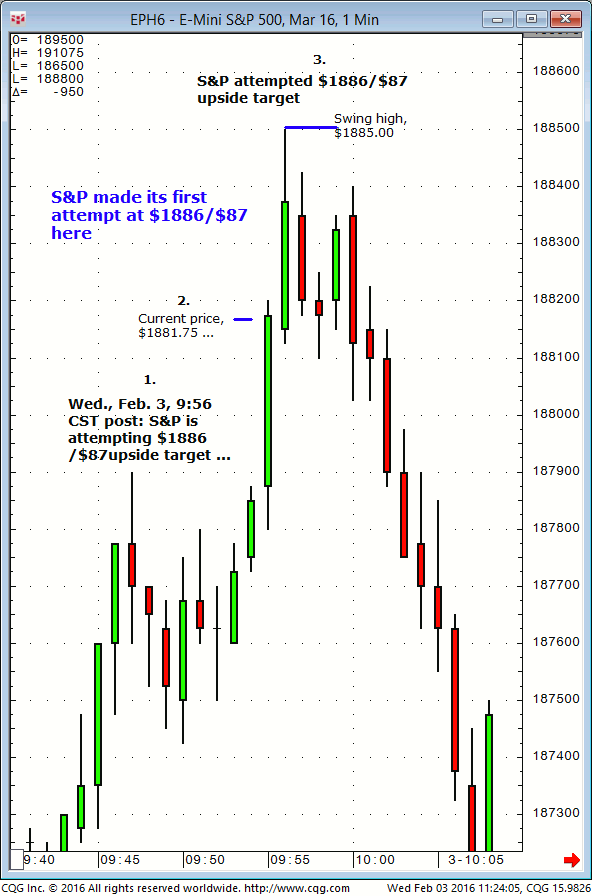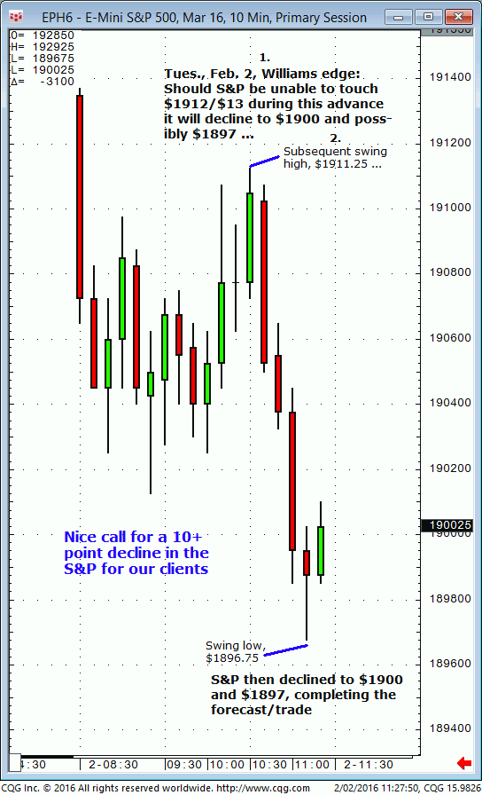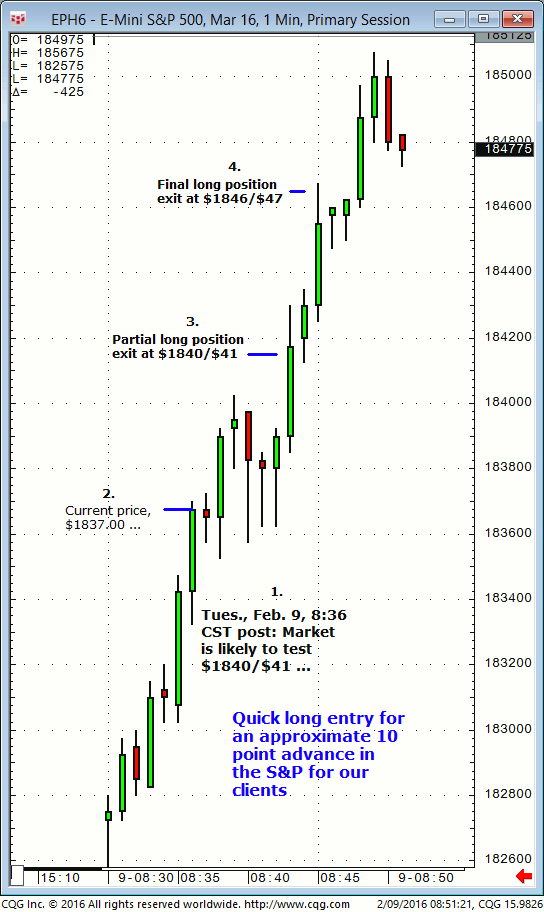 March S&P: 1. In today’s (Tuesday, February 9) Williams edge live meeting it was noted that both $1837, then $1831 were buying territory in the March S&P for a later session advance to $1857/$58 (or higher) expected to be tested slightly after mid day today. 2. Subsequently, the March S&P declined and tested both the […]