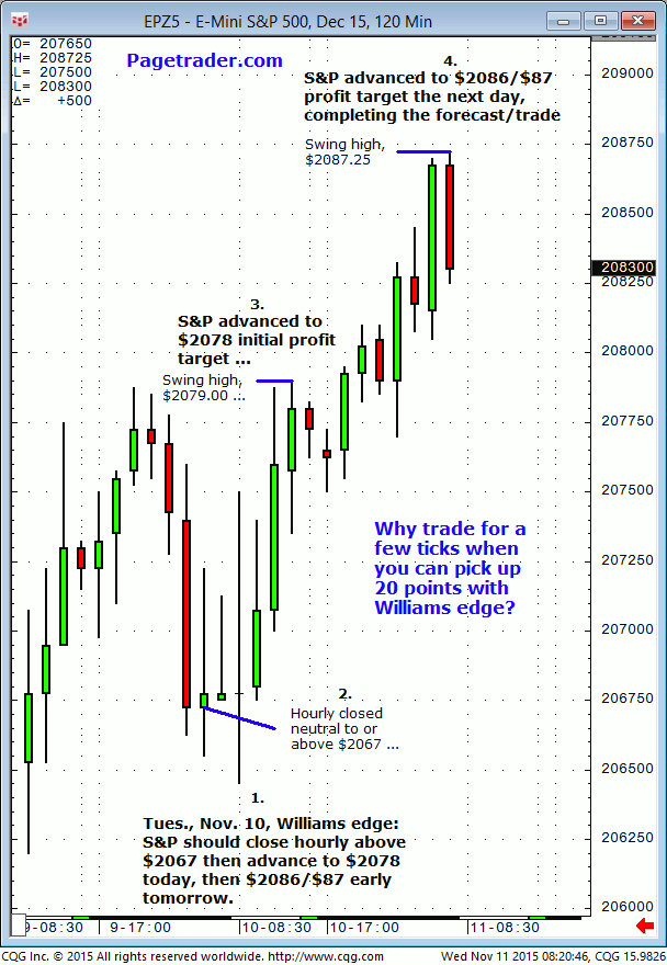 December S&P: 1. In Wednesday’s (November 25) Williams edge S&P meeting it was noted that the December S&P was likely to continue higher and test/attempt $2096 on the upside. 2. Subsequently, the December S&P advanced and completed the $2096 upside target (swing high, $2098.25). From this point forward, any hourly or especially daily close above […]