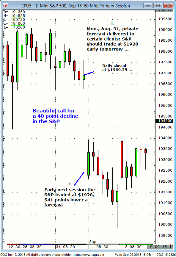 December S&P: 1. In today’s (Friday, September 18) 9:39 CST live S&P messenger post it was noted that barring a breakout above $1966/$67 the December S&P (then trading at approximately $1959/$60) would decline and test $1950/$49 (an approximate 10 point decline). 2. However, the market advanced to $1966/$67, prompting our short position exit, resulting in […]