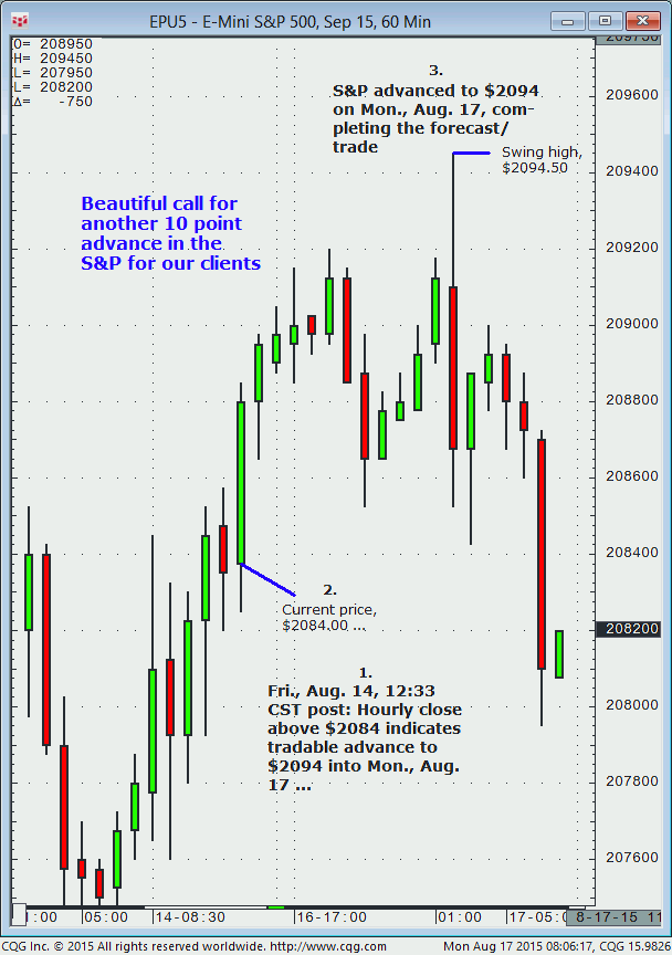 September S&P: 1. In yesterday’s (Wednesday, September 2) later session our S&P messenger indicated that any breakout above $1939 would provide a tradable advance to $1954 then $1962/$63 into today, Thursday, September 3. Yesterday’s Globex session immediately completed the $1954 initial upside profit target. 2. Today’s Globex session completed the forecast $1963 upside target (today’s […]