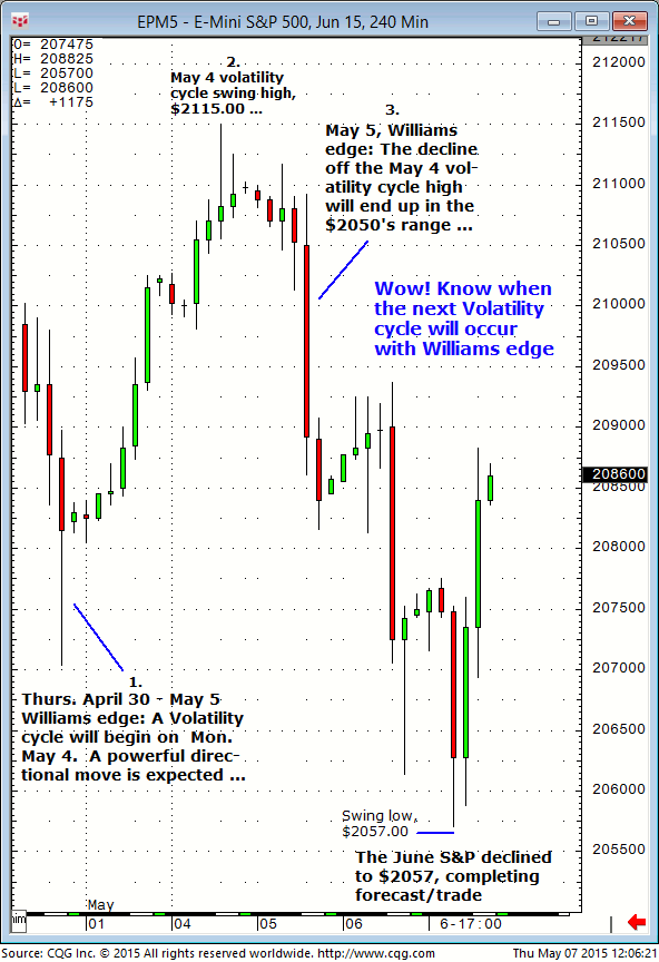 June S&P: 1. In Fridays (May 15) Williams edge S&P meeting it was noted that the next longer term upside target for the June S&P was $2135. 2. Today’s (Tues., May 19) June S&P completed the $2135 upside target (today’s Globex session high, $2134.00, so far). Will message any further entry or indication in the […]