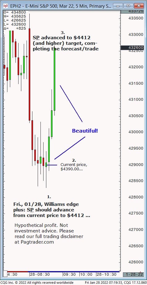 Fri., 01/28: S&P, currently at $4390, should advance to $4412. Result? The S&P advanced from $4390 to $4412 target (and higher)!