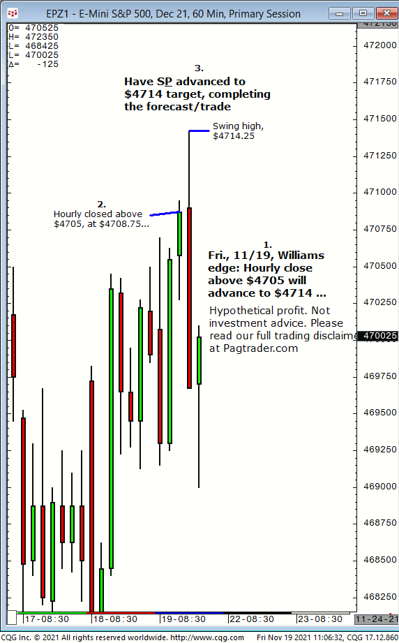 Hourly close above $4705 will advance to $4714 target. Results? Hourly closed above $4705 then advance to $4714 (swing high, $4714.25)!