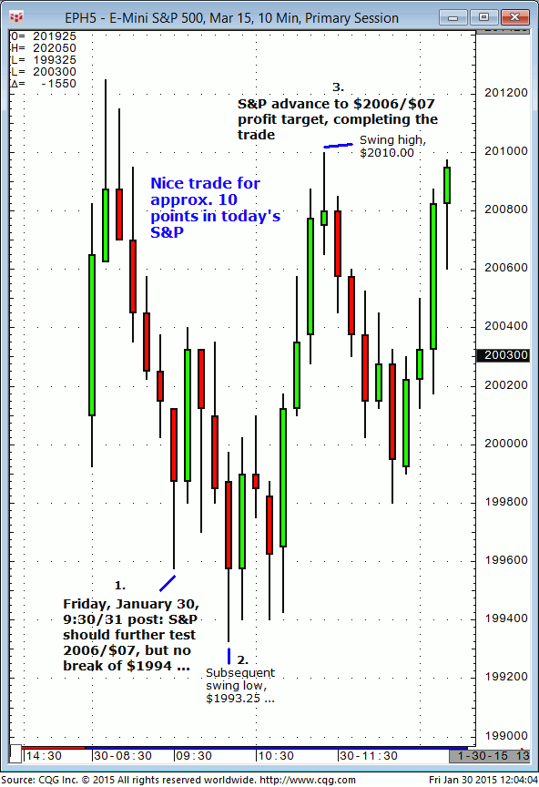 March S&P: 1. In yesterday’s (Mon., Feb. 2) live S&P messenger it was noted that any significant break of $1984 would test/attempt $1972/$70. 2. Subsequently the market broke $1984 and completed the majority of the forecast decline, making a session low of $1973.75, against the $1972/$70 downside target. 3. The slight miss of $2072 was […]